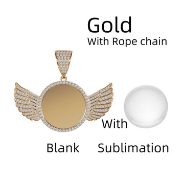 You can add any photo and it comes with rope chain. Please specify whether you want gold or silver in special instructions for seller once you add the items to your cart.